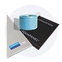 Polimerowo-bitumiczna wodoszczelna membrana z wkładką aluminiową wzmacniana włóknem szkalnym. Obustronnie powlekana folią PE Układana "na zimno" z paskiem samoprzylepnym.