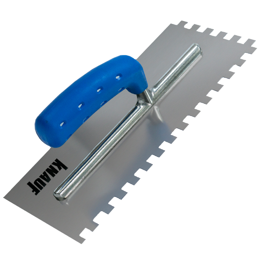 Profesjonalna paca zębata do glazury ze stali szlachetnej o wymiarach 300 x 130 mm. Z wydłużoną stopką alumniniową, mocowaną sześcioma trzpieniami i wygodną antypoślizgową rączką dwukomponentową.
