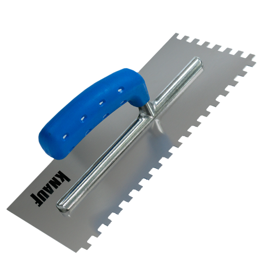 Zęby prostokątne o wymiarach 8 × 8 mm – wpływają na równomierne dozowanie kleju do glazury, są idealne dla standardowych płytek.