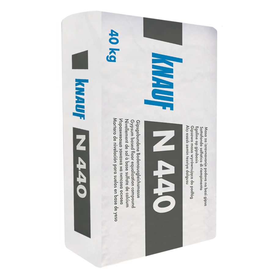 N 440 to fabrycznie przygotowana sucha zaprawa na bazie siarczanu wapnia o klasie jakości CA-C25-F6, do wyrównywania podłoży w zakresie grubości 10-40 mm. Posiada właściwości samopoziomujące. Szczególnie zalecany w systemach cienkowarstwowych ogrzewań podłogowych. Do użytku wewnętrznego.
