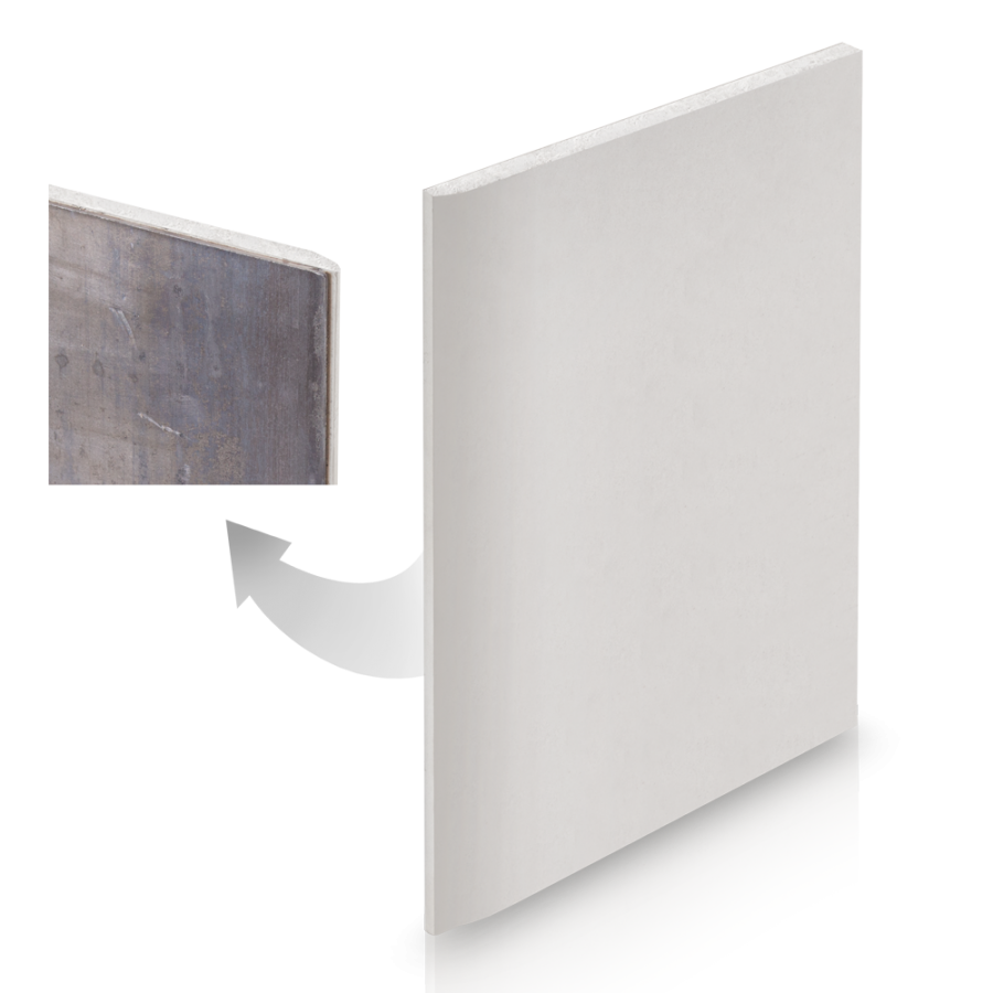 Płyta gipsowo-kartonowa z powłoką ołowianą do ochrony przed promieniowaniem rentgenowskim. Krawędź HRK. Produkt zawiera ołów.